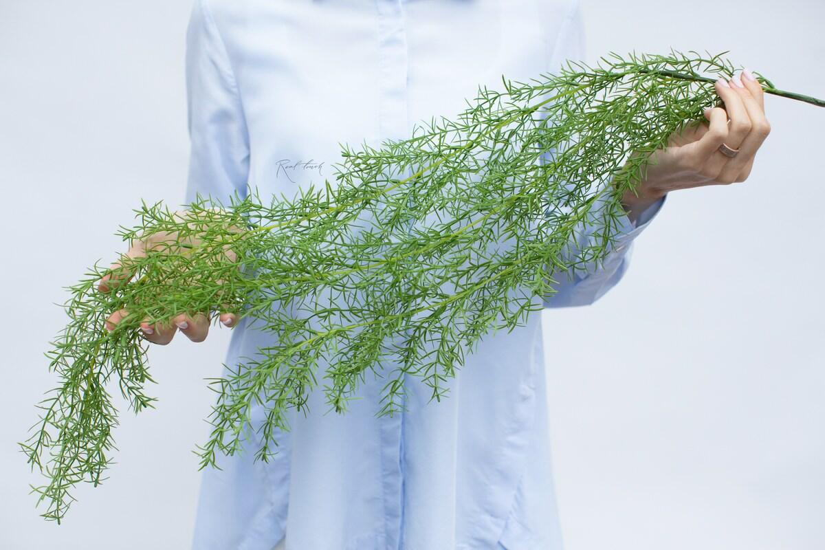 Аспарагус Шпренгера (98 см) от Real Touch – это великолепное искусственное растение с воздушностью и естественной игрой форм. Изготовлен из мягкого пластика, имитирующего реальность тончайших зелёных игольчатых листьев. Растение объёмно благодаря разным по длине побегам, а встроенная проволока позволяет придавать ему любую форму. Ножка крепления (8 см) удобна для монтажа. Идеально подходит для фитостен, подвесок и стильного интерьера!