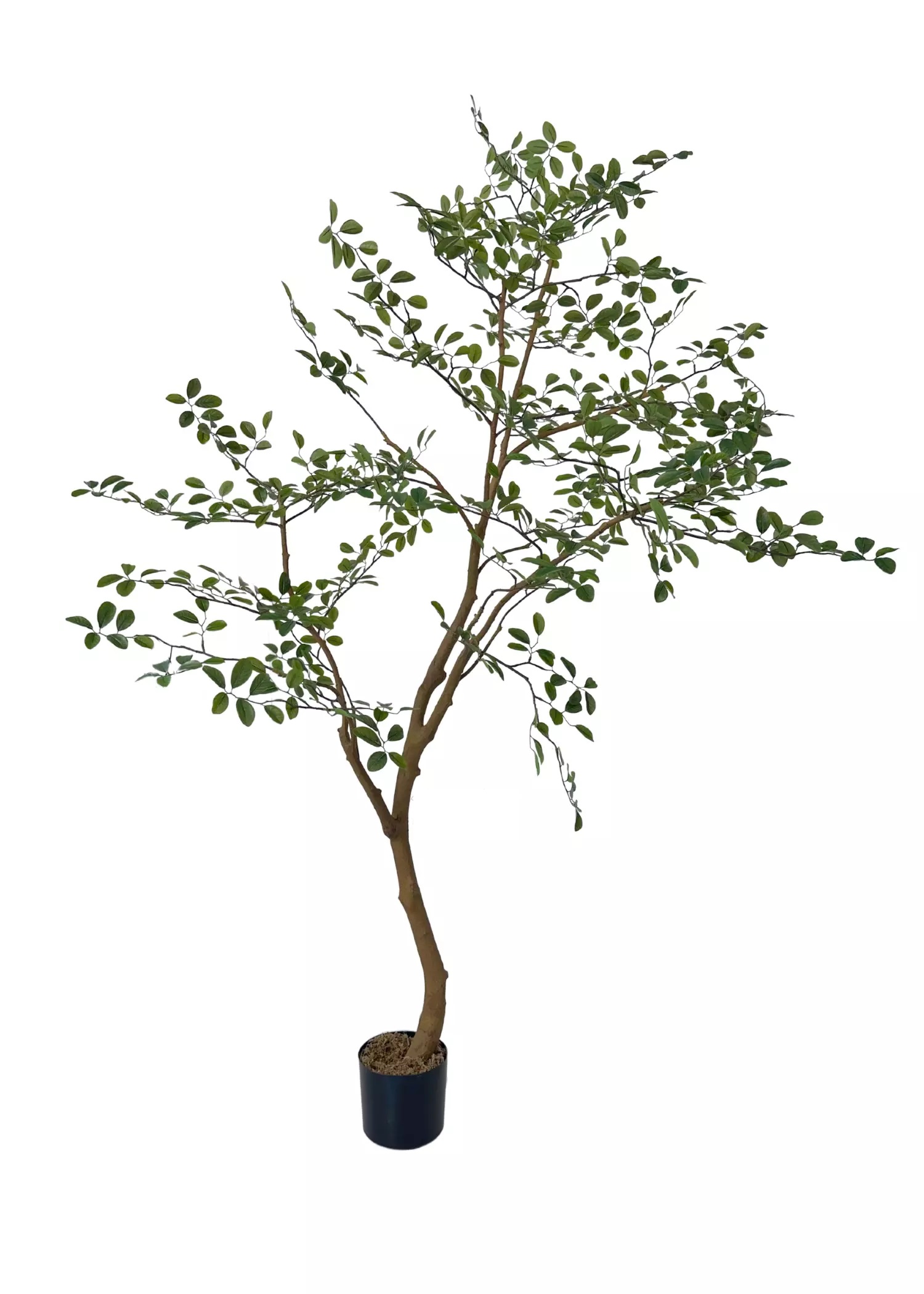 Дерево расположено в техническом кашпо, что упрощает установку и гарантирует его стабильность.