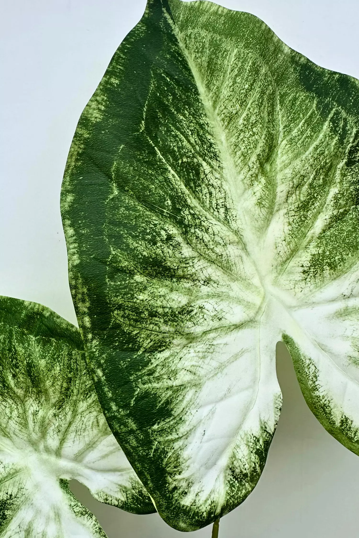 Каладиум Кандидум с 3 листьями — элегантное декоративное растение с ярким контрастом бело-зелёной окраски. Каждая пластина проработана с высокой детализацией: нежный белый фон с изумрудными прожилками создаёт эффект натуральности и утончённости.