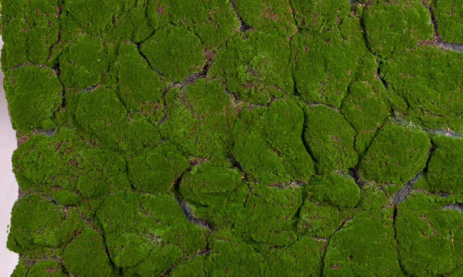 Коврик с объемными кочками по всей площади, размер 1*1м, основа - искусственный войлок. У этого коврика присутствет немного имитации земли, и кочки менее выпуклые, но при этом они разноразмерные и очень естественные. Сам мох - это тонкий ворс из пластика, нанесенный путем флокирования. Кочки достаточно плотно прилегают друг к дружке и не сплющены. Отлично подойдет для декора интерьера даже при минимальном заполнении растениями.