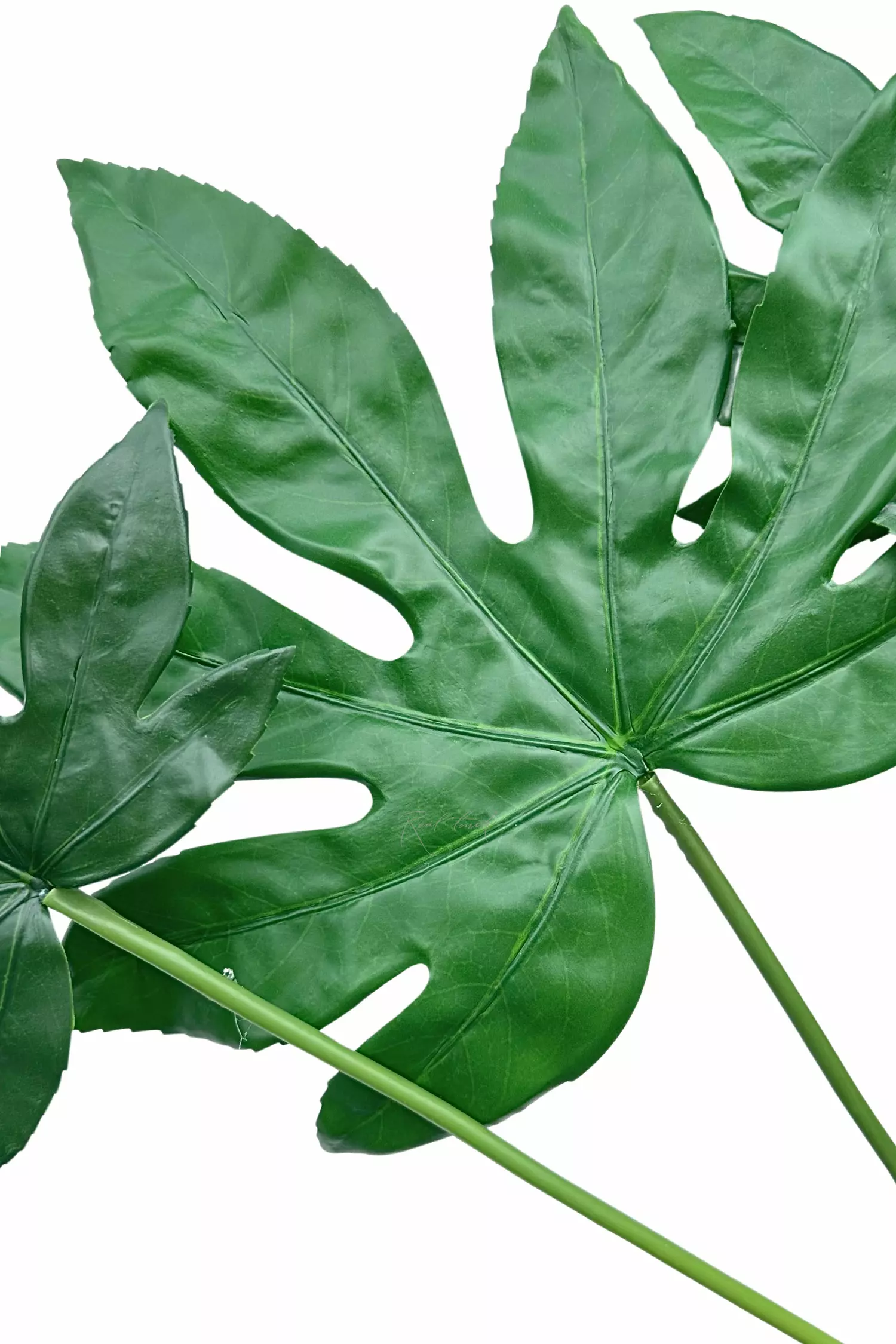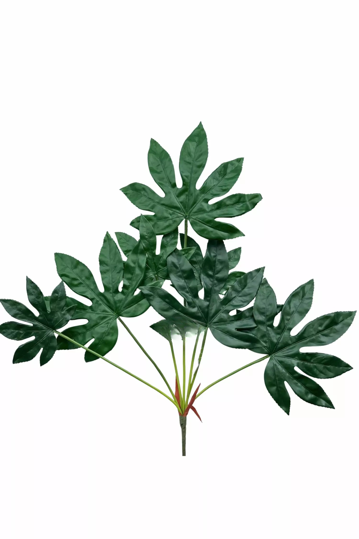 Листья выполнены с тщательной детализацией: глубокие прорези, живая фактура поверхности и естественный оттенок делают растение максимально приближённым к настоящему. Компактный, но высокий куст подходит как для самостоятельного размещения, так и для использования в декоративных композициях.