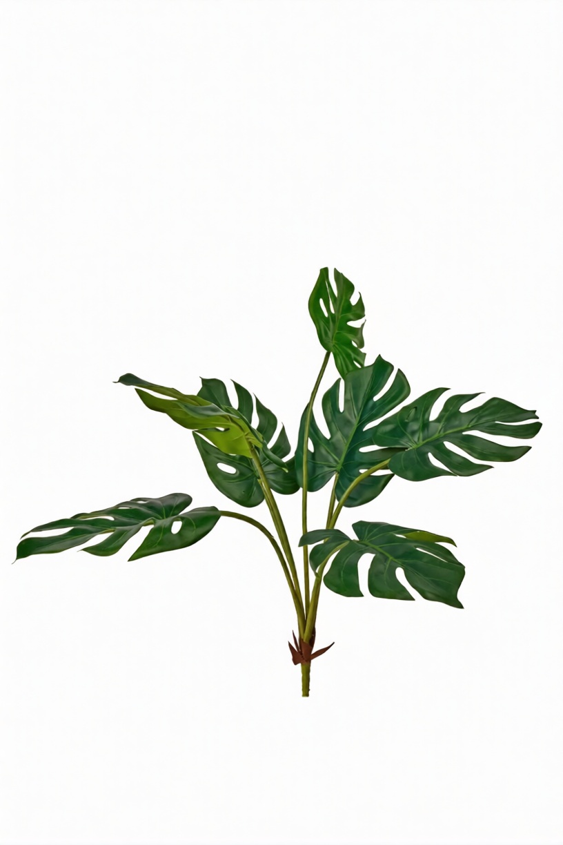 Долгожданная новинка Куст монстеры средний 7 листьев - стала отличным дополнением к нашей коллекции монстер. Отличительной особенностью данного кустика является минималистичное крепление снизу - без корней, проволоки и других дополнительных элементов. Пластмассовая ножка значительно облегчает работу при монтаже, когда требуется верхняя посадка растений. Листья выполнены из водонепроницаемого полимерного волокна, гладкие, плотные, с 3D печатью. Также отличительной особенность данной позиции является проволока, которая идет вдоль каждого листочка, что позволяет задать им индивидуальную форму и изгиб. Обратная сторона листа - техническая, с усилителями на каждом листике. Стебли выполнены из тубы, внутри проволока, которая позволяет задать направление каждому листочку. Стебель от крепление отделяется текстильными лепестками коричневого цвета, что позволяет гармонично отделить техническое крепление от самого кустика.