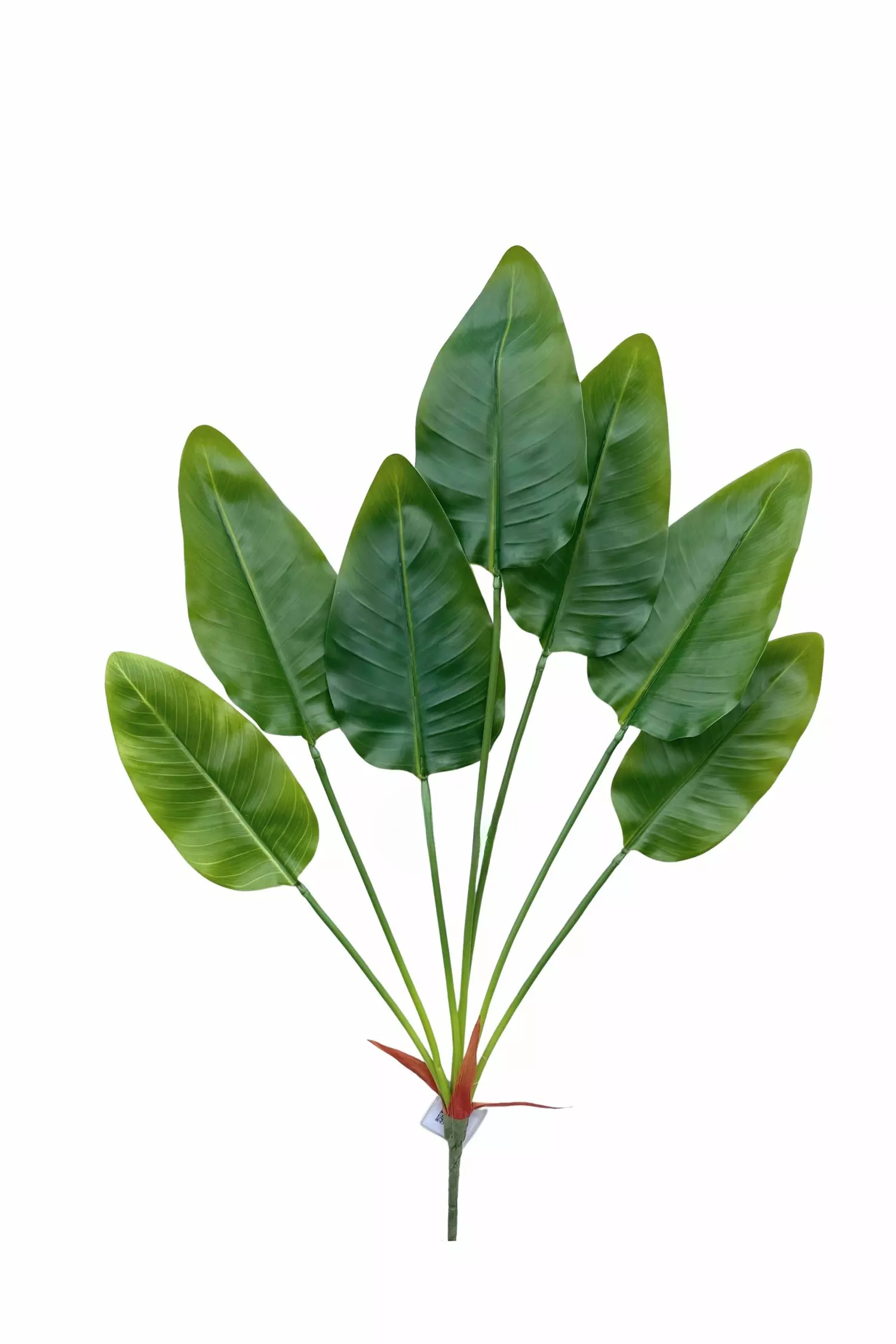 Куст Стрелиции из 7 листьев высотой 83 см — декоративное растение с эффектными крупными листьями насыщенного зелёного цвета. Форма листьев напоминает банановую, что придаёт растению экзотический и выразительный вид. Благодаря аккуратной пышной кроне куст гармонично вписывается в интерьер, создавая атмосферу уюта и природной свежести.