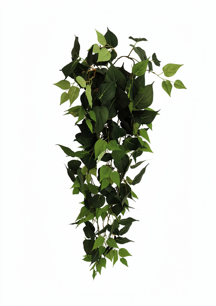 От ножки-крепления, выполненной из пластика, отходят длинные ответвления с листьями, которые свободно свисают без проволоки в основе. Это придаёт растению лёгкость и плавность, имитируя натуральные движения лианы.