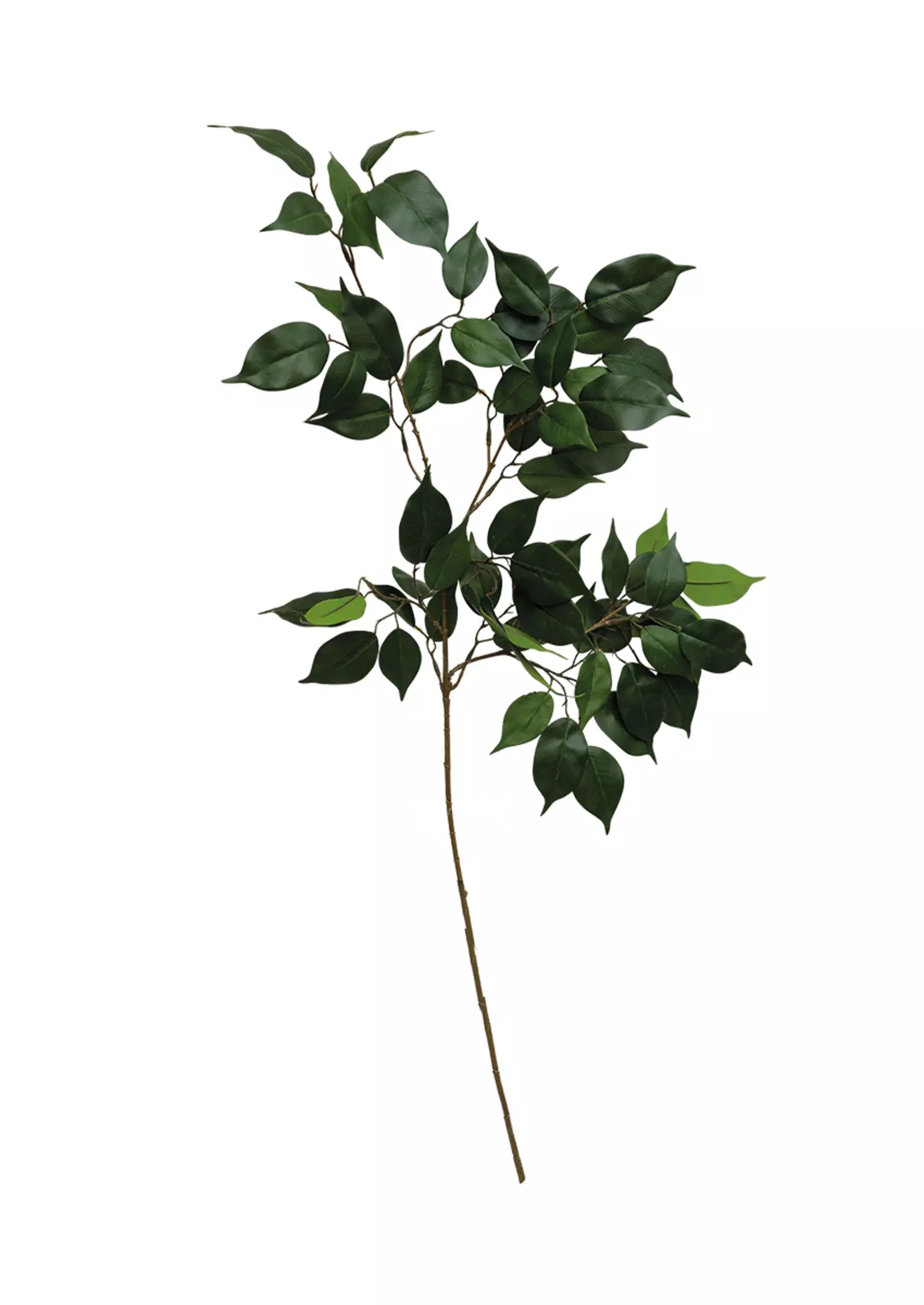 Ветка в длину 100 см, зеленая часть 50 см, в расправленном состоянии ширина 15-20см. Листья из плотного водонепроницаемого волокна, обратная сторона теплого зеленого цвета, лицевая темно-зеленая. По весу и на ощупь очень живая, но есть особенность - нельзя особо крутить веточки у основания, так как они приклеены и не имеют металлический основы.