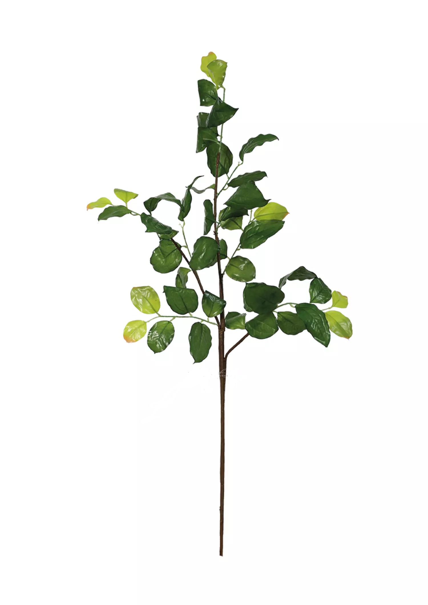 Листья текстильные, имеют разные оттенки — от насыщенно-зелёного до зелёно-жёлтого, что создаёт эффект естественного роста. На поверхности листьев выполнена печать прожилок, придающая им реалистичную текстуру.