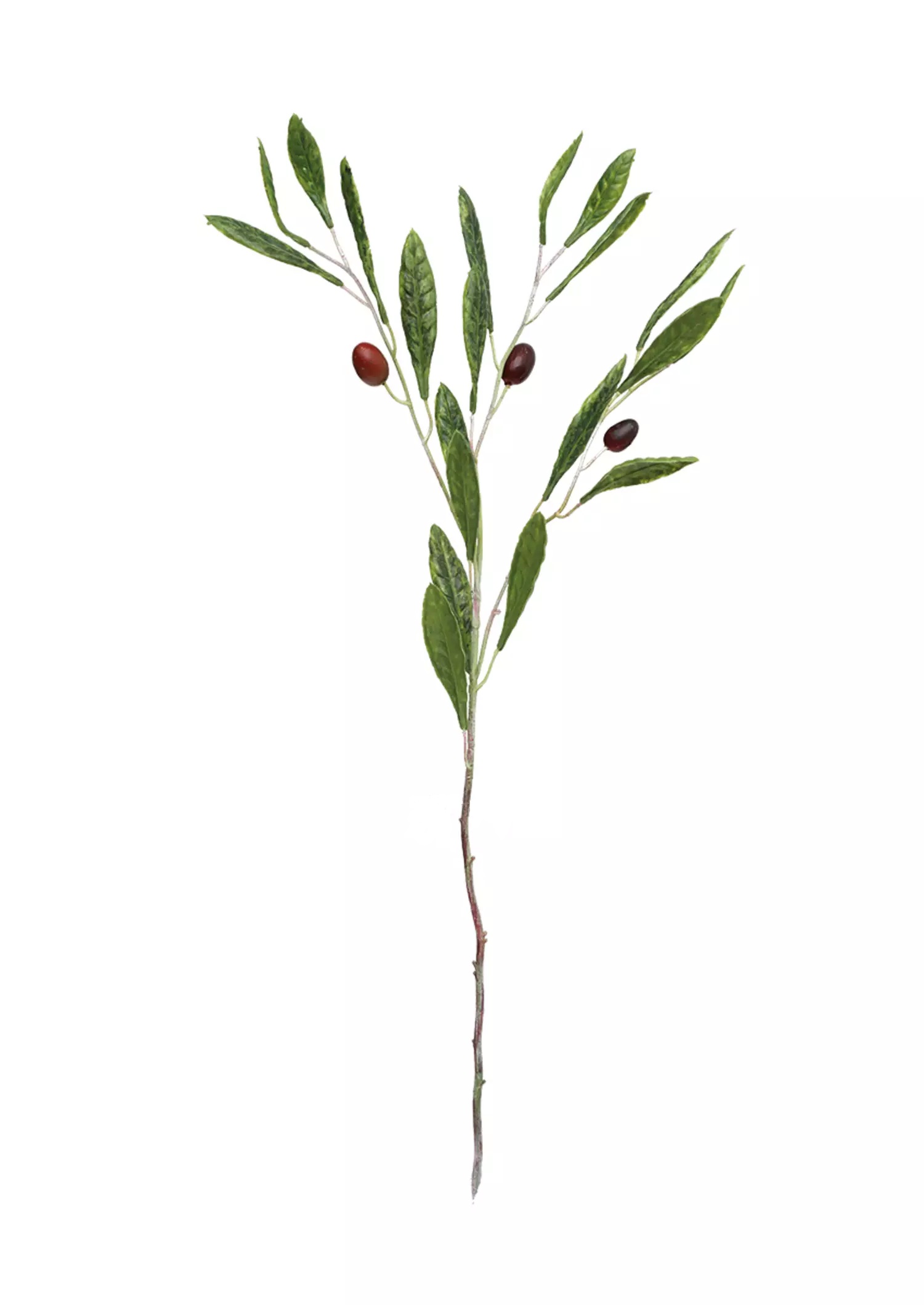 Ветка оливы выполнена из силикона и имеет необычную печать на листиках, которая имитирует неоднородных окрас. Разного цвета плоды, мягкость материала, гибкость веточки, плавные покачивания под тяжестью листьев - все это навеивает мысли об отдыхе.