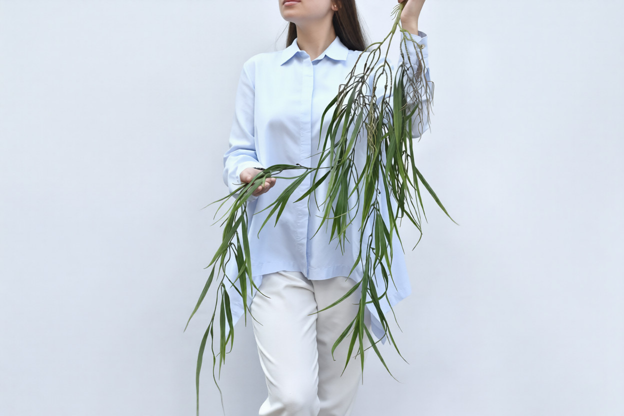 Плакучая ива идеально впишется в эко-стиль, биофильный дизайн, бохо и минимализм, а также станет отличным решением для озеленения современных интерьеров. Благодаря своей лёгкости и естественному силуэту, растение создаёт воздушную, расслабляющую атмосферу, подчёркивая природную гармонию в пространстве.