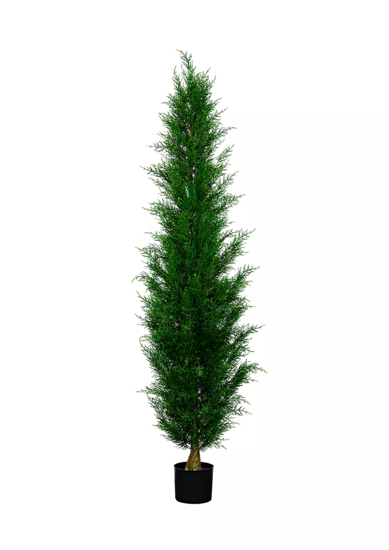 Западная туя из пластика представлена в трех размерах 210/180/150см. Крона имеет узкую пирамидальную форму, из-под которой видно тонкий ствол серо-коричневого цвета. Чешуевидная хвоя густая, яркая и блестящая, имеет переход цвета от темно-зеленого к светло-зеленому на кончиках, как у настоящего дерева. В материал хвои добавлено вещество, препятствующее воздействию ультрафиолетовых излучений и защищающее цвет от выгорания, что продлевает срок эксплуатации на улице. Доступны поштучно. Гармонично смотрятся набором.